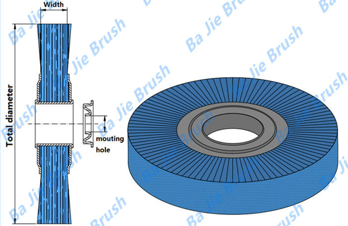 Essas duas partes são montadas em um formato de roda circular fina, tornando a escova adequada para instalação em máquinas de rebarbação e equipamentos de acabamento automatizados.